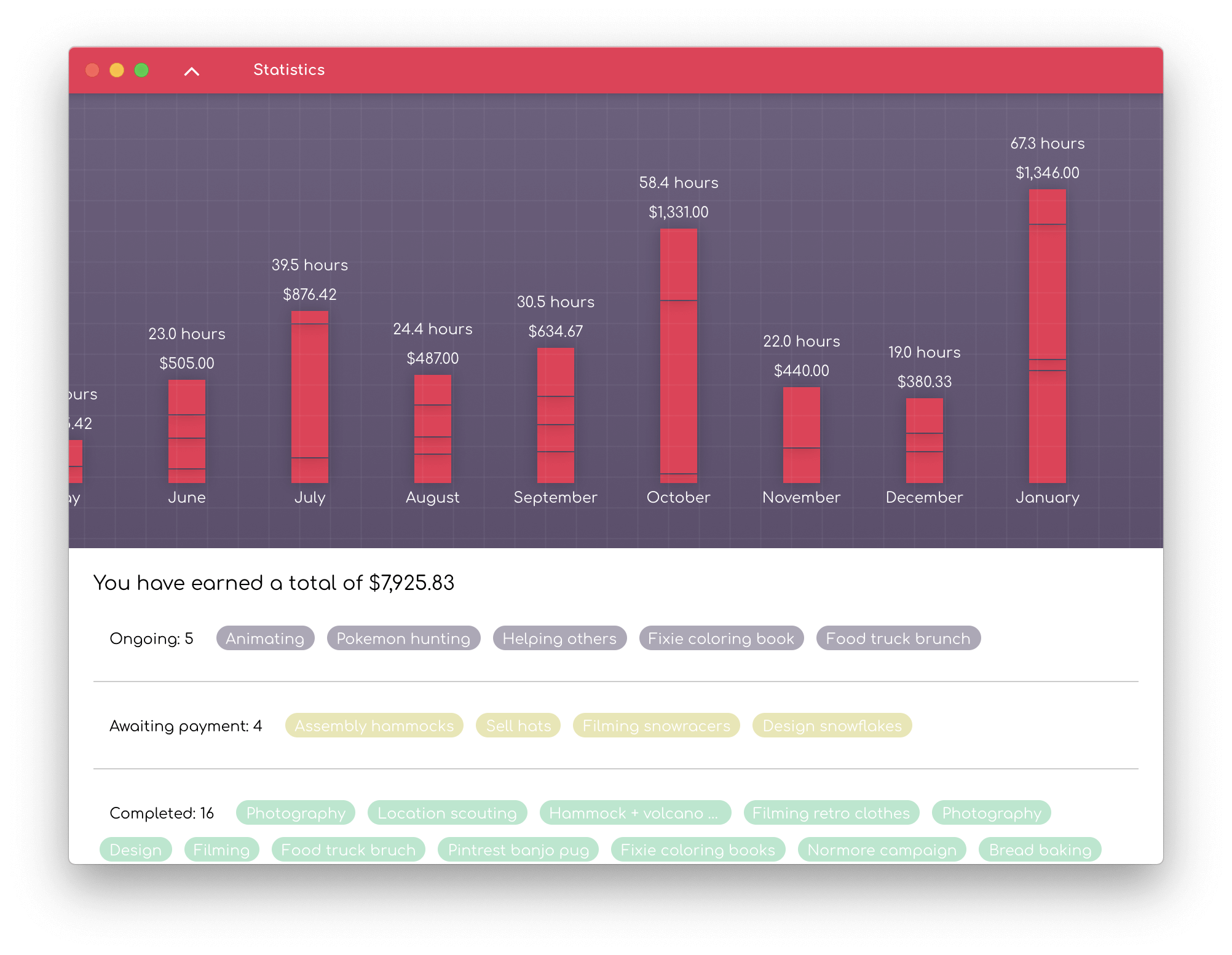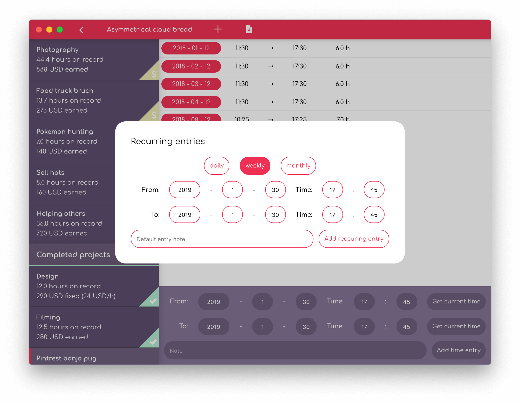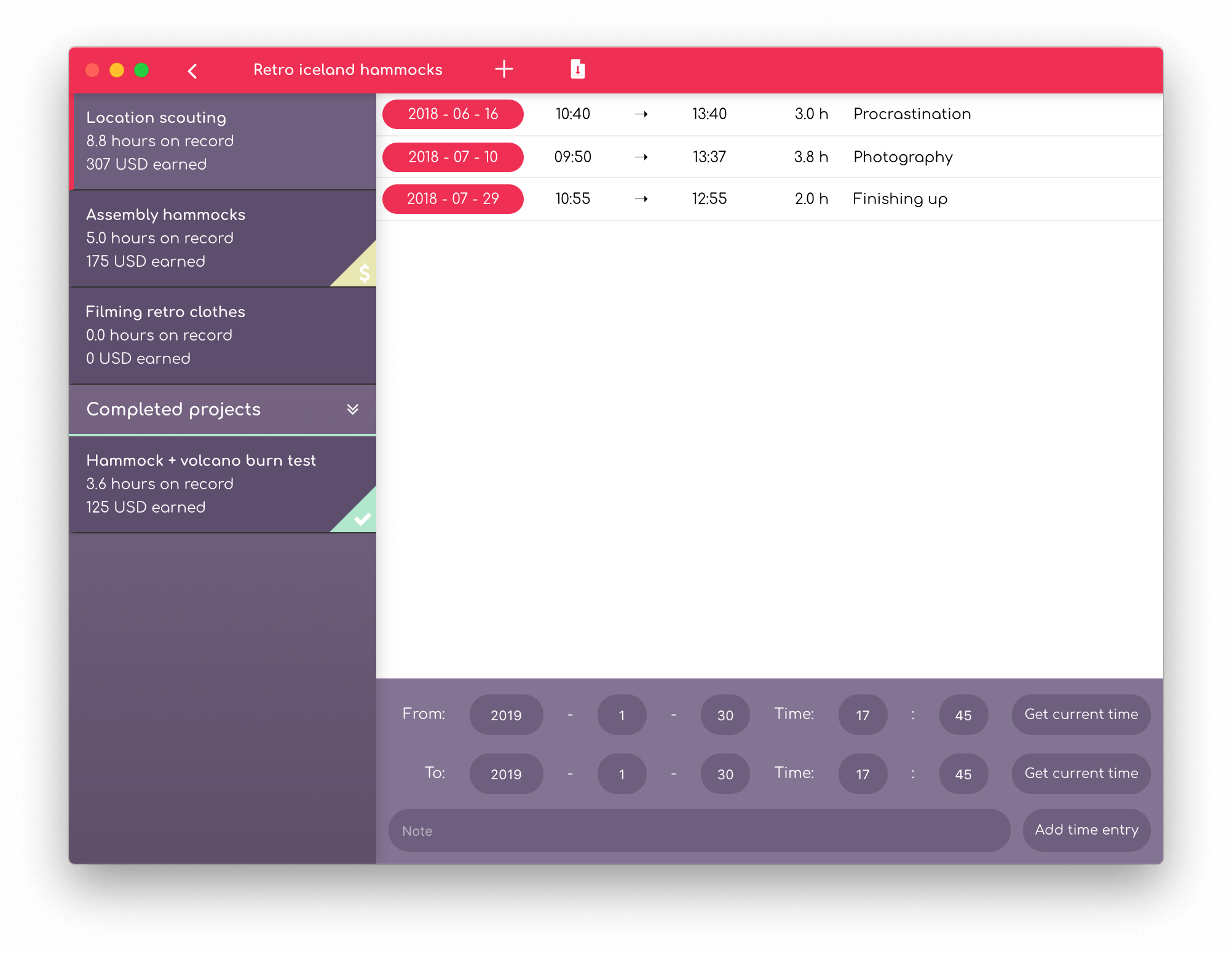 Time Trial offers a sleek interface and makes it easy for you to stay organized and updated about your ongoing and completed projects at a glance.